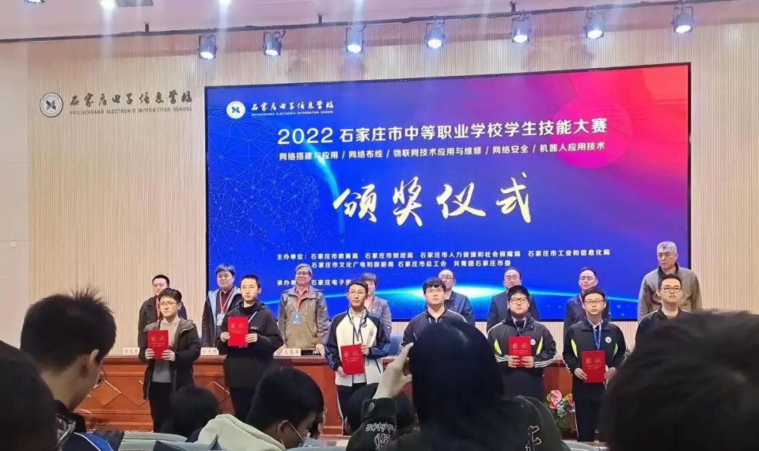 日前,由市教育局、市人社局等7部门组织的2022年石家庄市中等职业学校学生技能大赛正式拉开帷幕。我市技工院校代表队石家庄技师学院派出12支队伍41名选手参加了网络安全、网络布线、物联网赛项、数控综合应用技术、零部件测绘与CAD成图技术、装配钳工、数控综合等9个职业工种的竞赛角逐,分别获得学生组团体一等奖1个,二等奖6个,三等奖6个,个人一等奖3个,二等奖7个,三等奖13个;教师组团体三等奖1个,为我市技工院校系统赢得了荣誉。本次比赛成绩的取得,体现了石家庄技师学院学子们扎实的专业技能、拼搏的团队精神和奋进的精神面貌,充分展示了师生刻苦训练和努力钻研取得的成果。